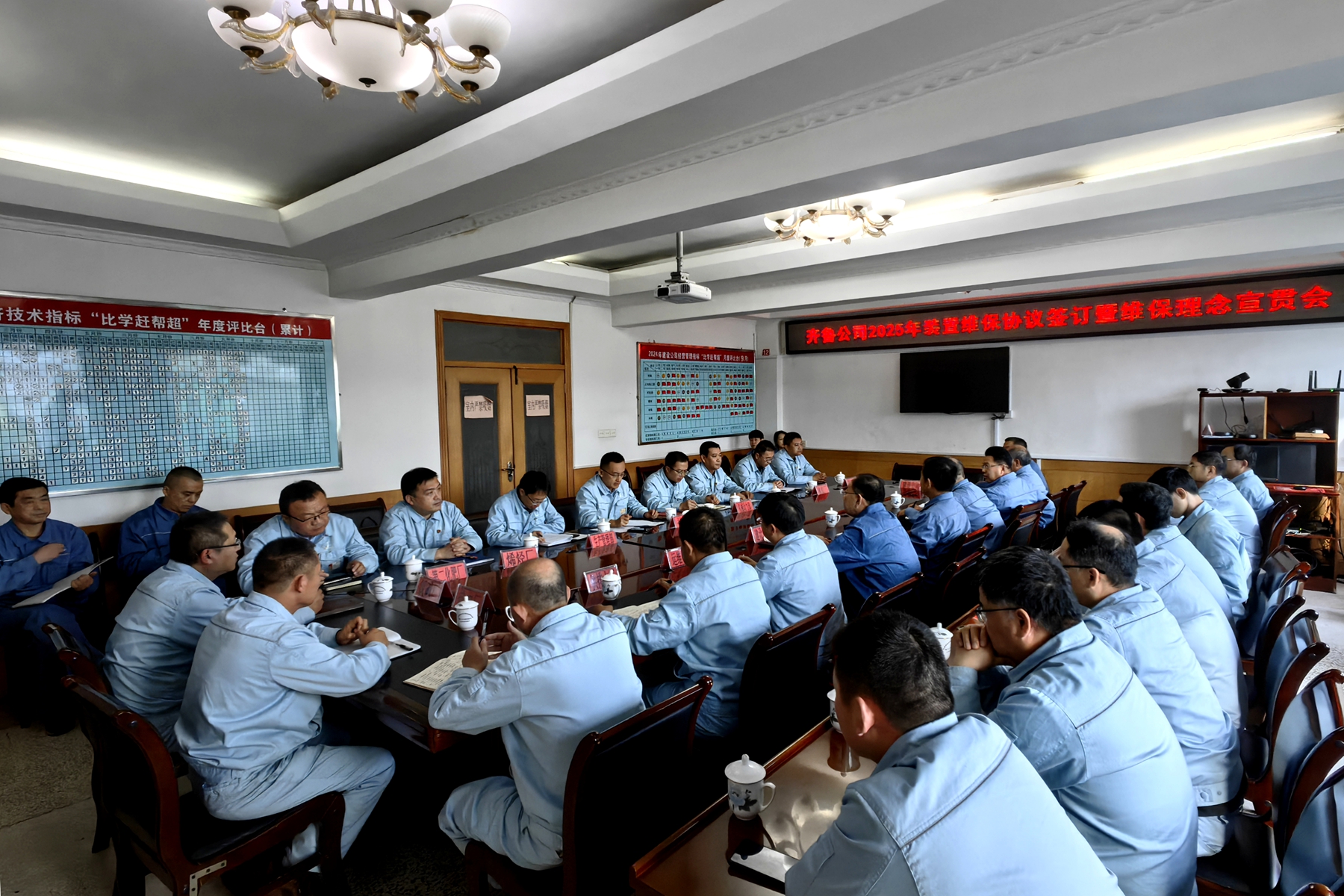 11月9日,齊魯石化2025年裝置維保協議簽訂暨維保理念宣貫會在我公司機關二樓會議室進行,齊魯石化副總工程師、機械動力部經理孫雨主持會議,機械動力部、生產管理部、勝利煉油廠、烯烴廠、橡膠廠、第二化肥廠、塑料廠、氯堿廠、熱電廠、儲運廠、供排水廠、運維中心等單位分管領導分別與我公司董事長王世佳簽訂了維保協議。